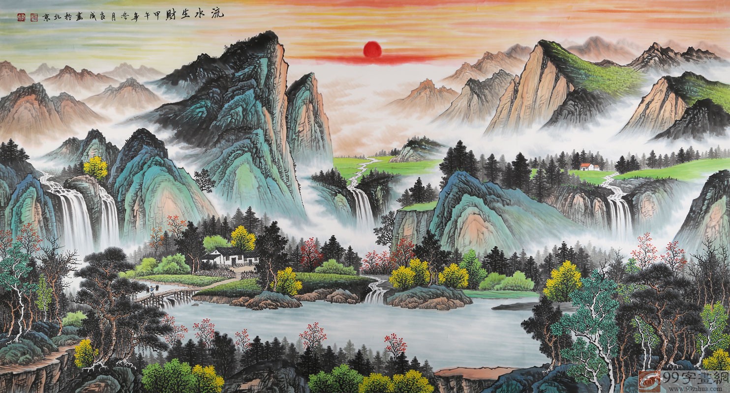 【已售】宁良成六尺聚宝盆风水画《流水生财》