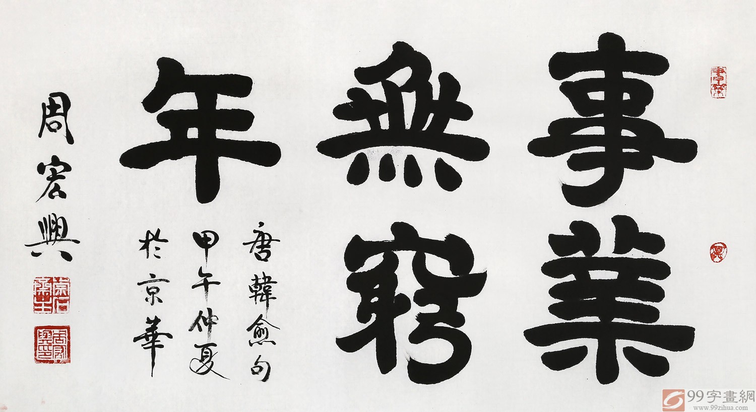 周宏兴传略被收入《世界名人录》、《中国专家人才大典》、《跨世纪中华英精英大典》、《中华人民共和国创业功臣大先辞典》、《中国艺术家辞典》、《中国作家大辞典》、《中国新诗大辞典》、《二十世纪中国收藏家大全》等。 当代书画大师为之题词:通古今之变 成一家之言 当代隶书大师刘炳森为之题词:举前贤之未及 启后学于成规 当代书画大师王遐举称赞其隶书功底深厚,凝重古朴,并为其题词曰:承前启后 继往开来。