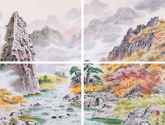 赵元哲(元哲),朝鲜一级画家,1970年基千郡出生,1994平壤美术大学朝鲜画部毕业,现三金岩创作社创作家。创作了百幅风景国画,并在对外展览会上展出,代表作:《香山之秋》。