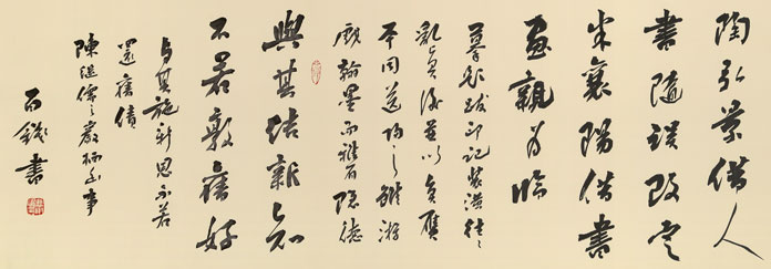 裴小波(百钱),1964年生,宋代文化及苏轼研究学者,精研苏轼书法30余年,山东省书协第三届临帖展一等奖获得者,现为:山东省书协成员,中国楹联学会会员。精于用笔,清圆秀润中有劲健遒逸之姿,崇尚苏轼书法艺术,其书风典雅舒秀,自成风格。著名学者曾健评论他的书法是“硬毫无棱角,软毫有筋骨,刚柔并济,自成风骨”。