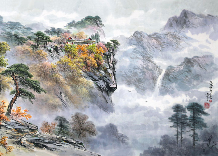 金善国(朝鲜一级画家),1966年1月7日出生在咸境北道。1991年毕业于平壤美术大学朝鲜画系。1991年后在中央美术创作社。代表作:《去往放牧地的路》等。金善国的作品非常细腻传神,他常常将春天生机盎然,秋天层林尽染的自然景观细腻地刻画出来,在对风景的描绘上追求写实,而在对色彩的使用上注重对亮色调的使用,给人以极好的视觉享受,是非常值得收藏的朝鲜艺术精品。