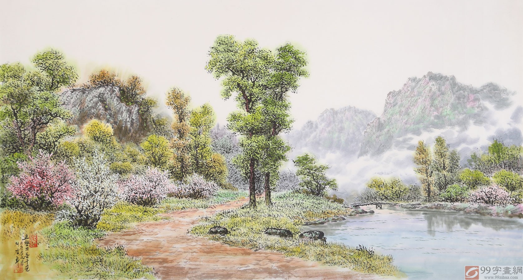 蔡京华(朝鲜著名画家、一级艺术家),1948年7月15日出生于朝鲜平安北道云山郡九邑里。1966年毕业于平壤美术大学绘画系。1967-1978年担任中央美术制作社画家。1979年后担任铁道美术社画家、室长。有多幅作品入选朝鲜国家美展和对外美展,是一位非常有实力的朝鲜画家。也有多福山水画作品入选在中国、俄罗斯、日本等国家举办的美展。蔡京华的艺术作品大多以山水为主,极具亲和力,让人望画而知乡。画中郊外气息凝重,总是给人以世外桃源豁然开朗的感觉,作品笔墨线条错杂有致,皴擦点染,疏密有度,是非常难得的收藏佳作。