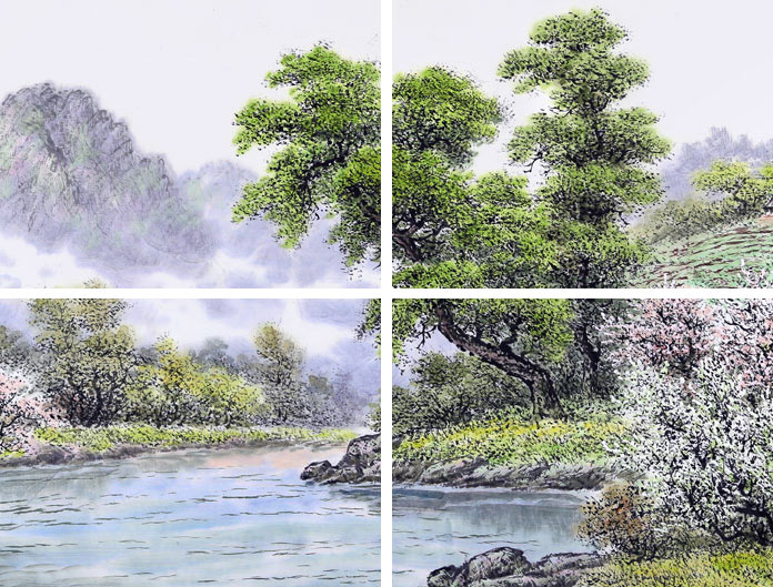 蔡京华(朝鲜著名画家、一级艺术家),1948年7月15日出生于朝鲜平安北道云山郡九邑里。1966年毕业于平壤美术大学绘画系。1967-1978年担任中央美术制作社画家。1979年后担任铁道美术社画家、室长。有多幅作品入选朝鲜国家美展和对外美展,是一位非常有实力的朝鲜画家。也有多福山水画作品入选在中国、俄罗斯、日本等国家举办的美展。蔡京华的艺术作品大多以山水为主,极具亲和力,让人望画而知乡。画中郊外气息凝重,总是给人以世外桃源豁然开朗的感觉,作品笔墨线条错杂有致,皴擦点染,疏密有度,是非常难得的收藏佳作。