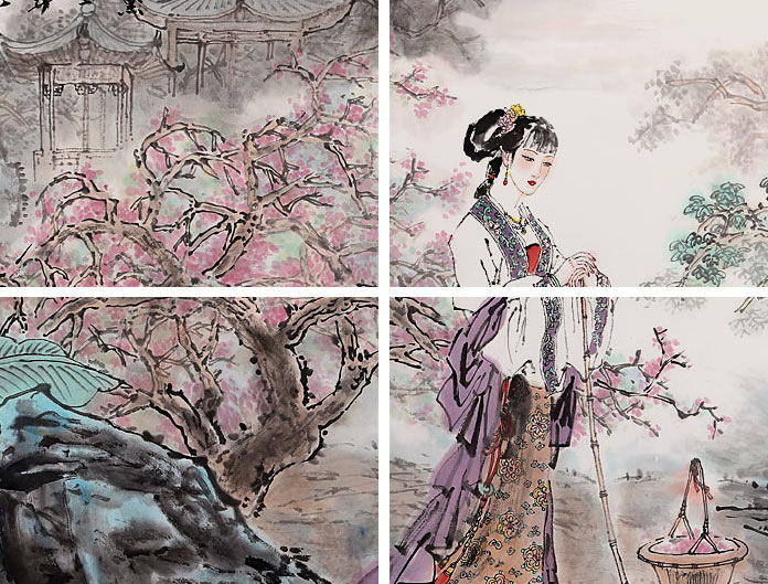 他的写意人物画以“以形写神”,融合中西艺术元素,兼取南北技法之长,形成了雄中寓秀的艺术品格。他笔下的仕女多有由“媚”见性的慧心,强调人心柔媚的通感,将素描的明暗和传统的虚实糅合在笔墨线条的传统审美情趣中,重构了中国仕女画的笔墨意趣。是十分难得的收藏佳作。