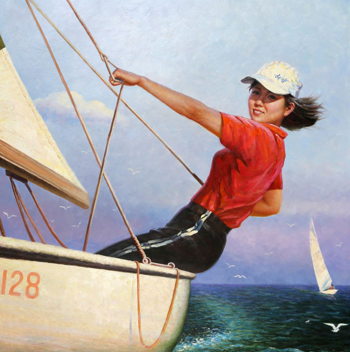 韩光勋(朝鲜功勋画家),1976年10月11日出生于平壤,从小希望成为像父亲一样的美术家,在平壤艺术学院毕业后进入朝鲜人民军创作社进行了3年的创作活动,之后进入万寿台创作社。2003年毕业于平壤美术大学油画系,代表作有描绘白头山风景的油画《白云峰的雪暴》,在朝鲜国家美术展览会上留下了深刻的映象,2005年在北京艺术博览会上展出了其油画作品《在湖边》。