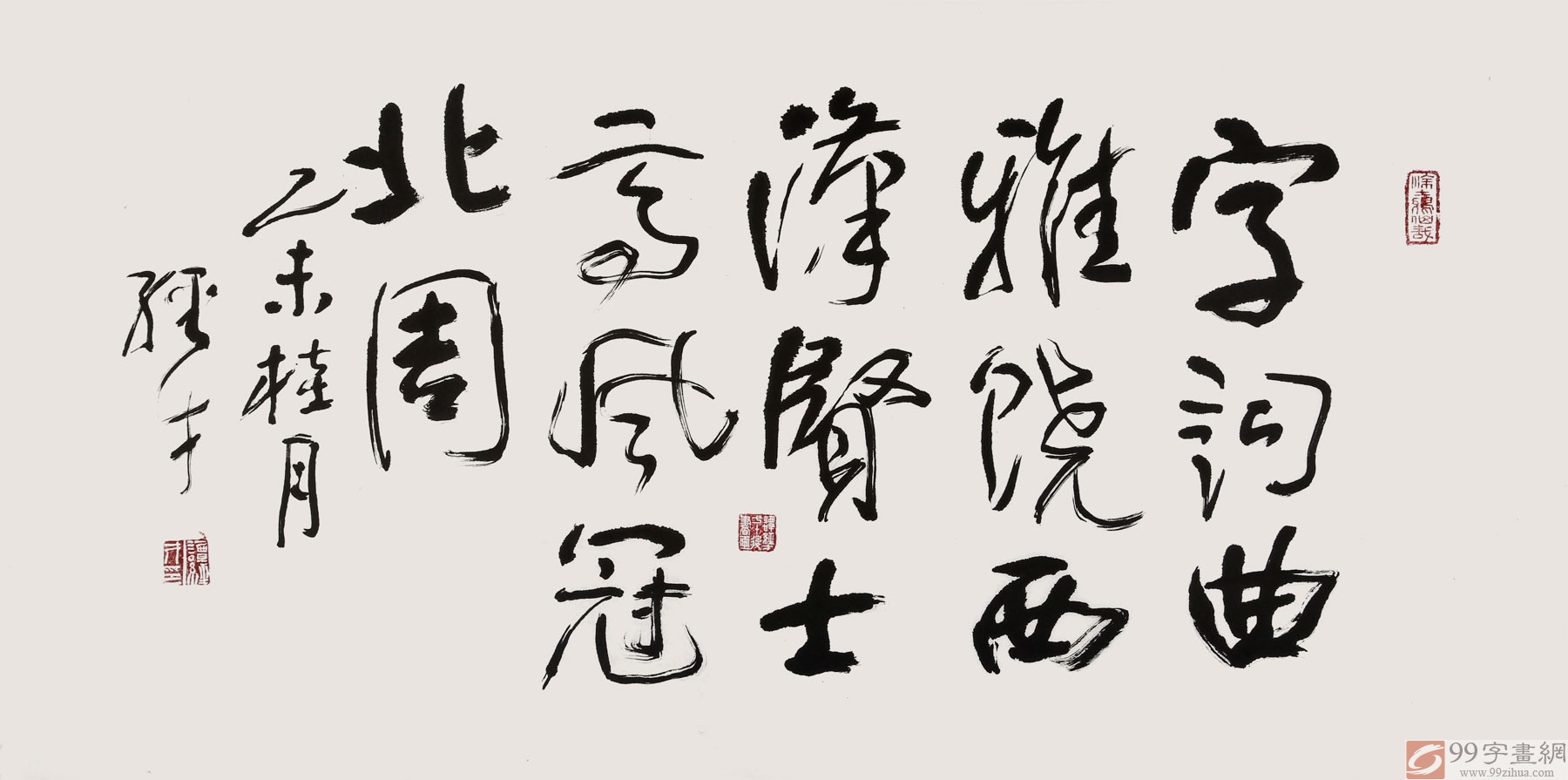 谭经才的书风力求闲逸抒情,如奔如跃,笔势于恣肆中蕴涵恭谨,章法于散乱中隐藏妙趣。结构老到,用笔率真,雄强老辣,势不可当,颇具冲击力和感染力,