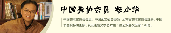 看杨小华的绘画,就像来到了彩云之西的德宏,一切是那么美丽质朴、和谐自然而又热情洋溢…在他的绘画中,很自然地融入了滇西文化元素。他是一个本质意义上的艺术家,这个美丽的地方的文化基因被沉淀在画家的骨子里,那是流淌在血液里面无法磨去的印记。这个美丽的地方是他的根,也是他创作的源泉,即使画家不去刻意地修饰,在其纯粹的绘画里面云南元素也会一直存在。在杨小华描绘的“有一个美丽的地方”,我们感受到的分明是中国传统书画在悠悠岁月中不变的民族文化本质,这分明是中国传统艺术历经苍桑后春华秋实的回归。
