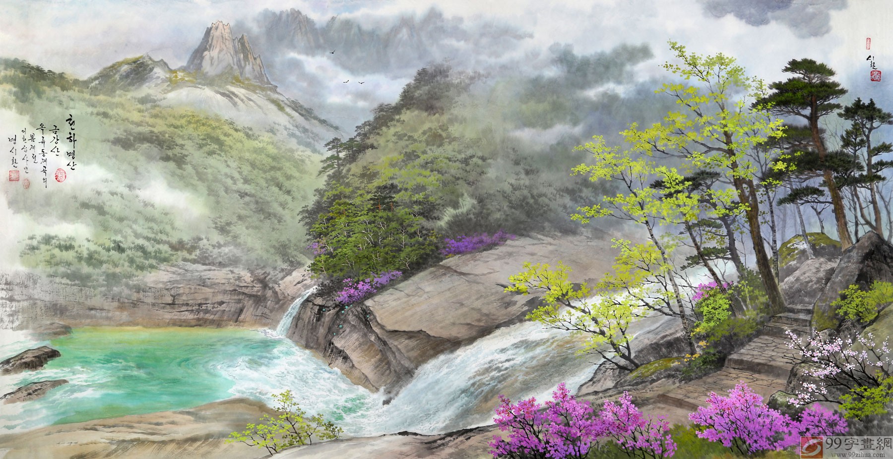 明时焕,朝鲜画大家,朝鲜人民艺术家,1947年8月21日生于平壤市木兰峰区域。1971年9月毕业于平壤美术大学朝鲜画系。1971年10月后任铁道美术创作社画家、室长。1992年获功勋艺术家称号。2000年铁道美术学院创作社分科长,美术家同盟朝鲜画分科委员。2004年荣获人民艺术家称号。代表作:朝鲜画《万景台故居》(2001年国宝级作品),《下毗卢峡谷》等30多幅作品入选国家美术展览会。
