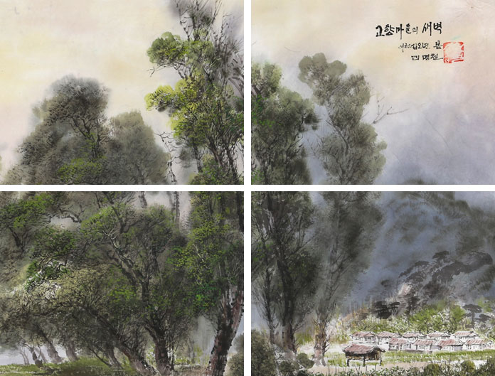李明哲,朝鲜一级画家,1959年平壤市出生,1984年平壤美术大学朝鲜画部毕业,1984年朝鲜美术博物馆美术家,1987年中央美术创作社朝鲜一级画家,代表作《深秋》、《出嫁》等。