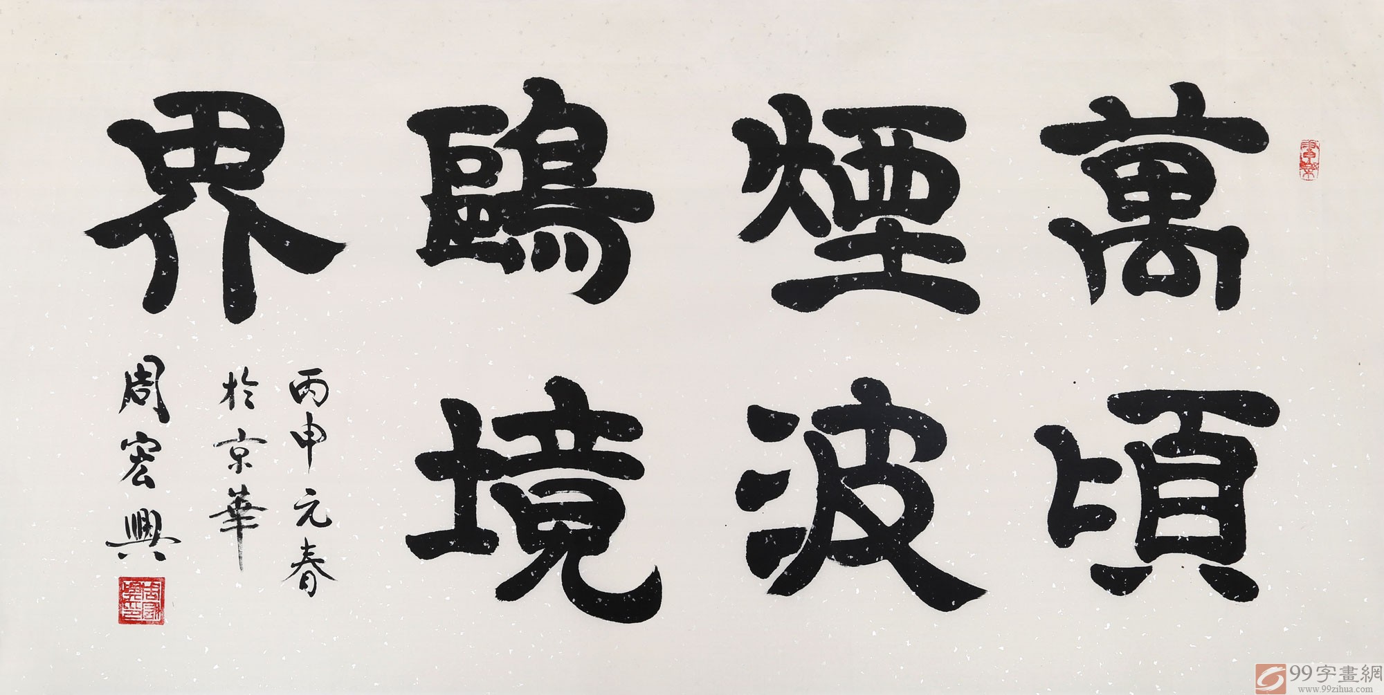 周宏兴传略被收入《世界名人录》、《中国专家人才大典》、《跨世纪中华英精英大典》、《中华人民共和国创业功臣大先辞典》、《中国艺术家辞典》、《中国作家大辞典》、《中国新诗大辞典》、《二十世纪中国收藏家大全》等。 当代书画大师为之题词:通古今之变 成一家之言 当代隶书大师刘炳森为之题词:举前贤之未及 启后学于成规 当代书画大师王遐举称赞其隶书功底深厚,凝重古朴,并为其题词曰:承前启后 继往开来。