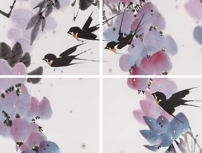 【作品简评】苗雨的绘画吸收了石涛、八大、以及当代吴冠中等大家的画法并借为己用,他的笔墨泼辣大气,大开大合,元气淋漓,但又绝无江湖纵横习气,收放有度,苗雨巧用了宋人绘画笔法的细致,使得他笔下的山水或花鸟充满着祥和和宁静,又充满了生命的张力。他大胆融进西方油画的技法,特别是在用色方面有着他独到的见解,从而使整个画面有一种朦胧、迷离的效果,把中西方绘画技艺巧妙的结合起来,形成了自己独特的艺术风格。
