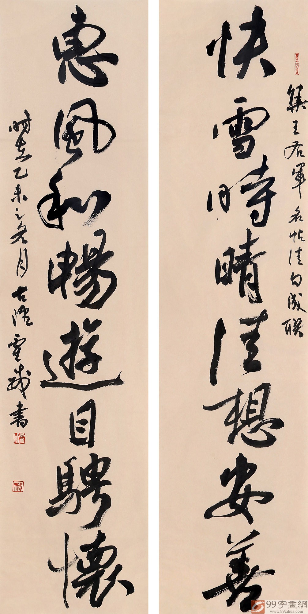 对联内容:快雪时晴,佳想安善;惠风和畅,游目骋怀。