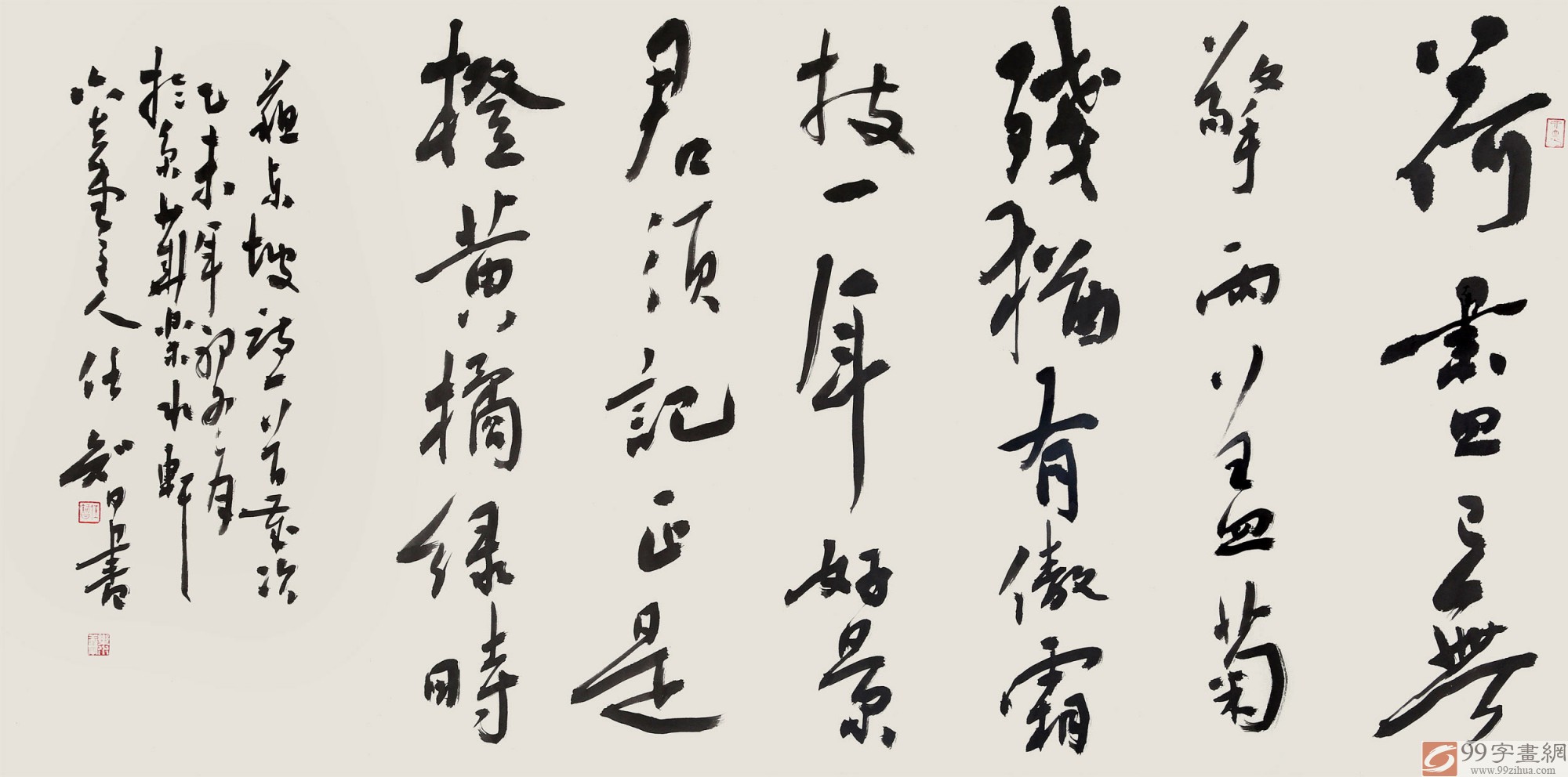 任智先生出生于教育世家,师从舒同,林散之,程十发诸名家,书法上研金文古隶,书风追朔魏晋唐宋,尤其是近年来,对明清书画家王铎、邓石如、吴昌硕潜心研悟、心摩手追。意在集历代书画家风神,成自家书画风范,书体全面、擅篆隶行草。