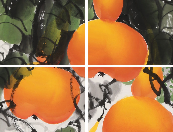 【已售】黄艺四尺斗方招财辟邪葫芦画《五福临门》