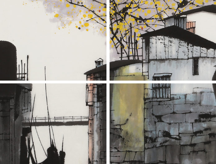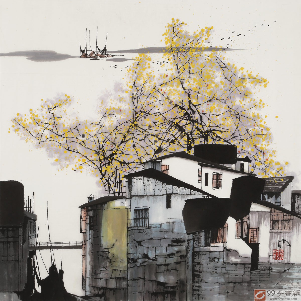 【作品简评】苗雨的绘画吸收了石涛、八大、以及当代吴冠中等大家的画法并借为己用,他的笔墨泼辣大气,大开大合,元气淋漓,但又绝无江湖纵横习气,收放有度,苗雨巧用了宋人绘画笔法的细致,使得他笔下的山水或花鸟充满着祥和和宁静,又充满了生命的张力。他大胆融进西方油画的技法,特别是在用色方面有着他独到的见解,从而使整个画面有一种朦胧、迷离的效果,把中西方绘画技艺巧妙的结合起来,形成了自己独特的艺术风格。