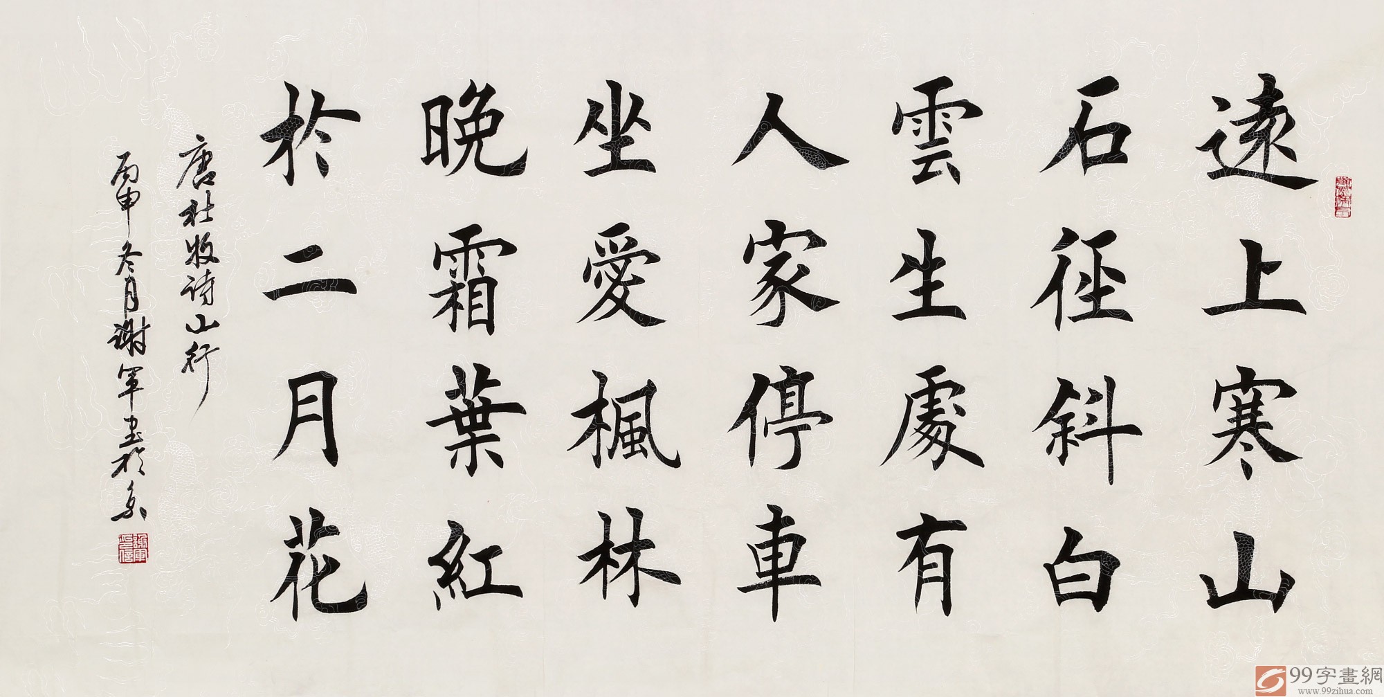 谢军,男,1969年生,吉林白城人,现居北京。自幼酷爱书法,主攻楷书,兼习行书,毕业于国家人事部中国书画人才研修中心,师从著名书法家田英章先生,现为中国世纪大采风书画院院士,中国扇子艺术学会会员,中国美术家画院院士,中国书画界联合会会员,北京茹古斋特聘书法家。其楷书用笔方整,结体紧凑,法度森严,于方整中见险绝。小楷《千字文》于2012年4月入选“庆祝中国出版集团公司成立10周年书法绘画展”并在荣宝斋展出;多幅作品入编《中国书法家辞典》、《中国书法家作品选》等典籍。