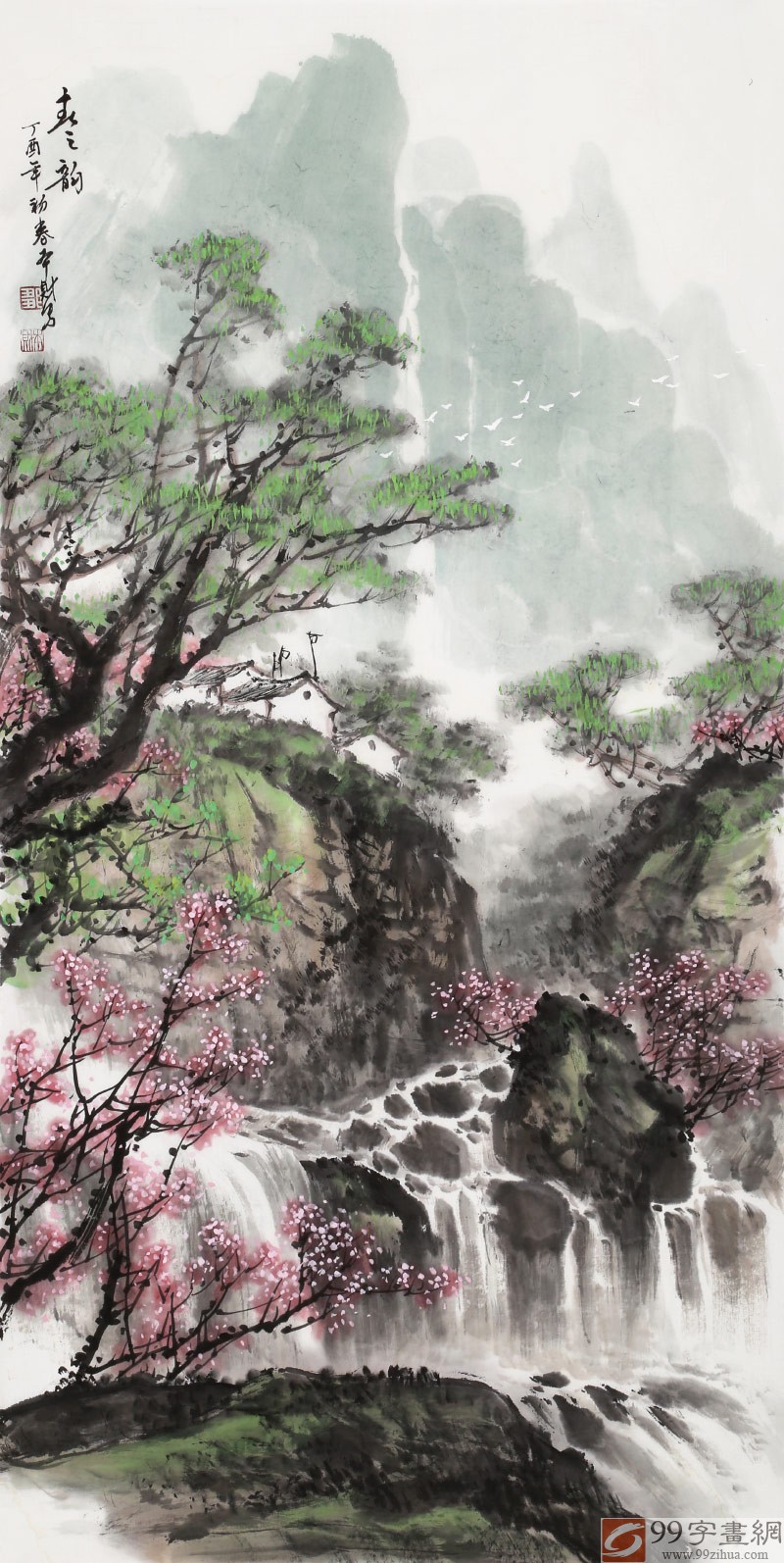 邹本财的山水画以对大自然的独到见解,树立了自己“清秀”的画风,作画尤精墨法,在水墨之中略施淡彩,以饱满的热情和对大自然独特的感悟绘出了山川大河的神韵。