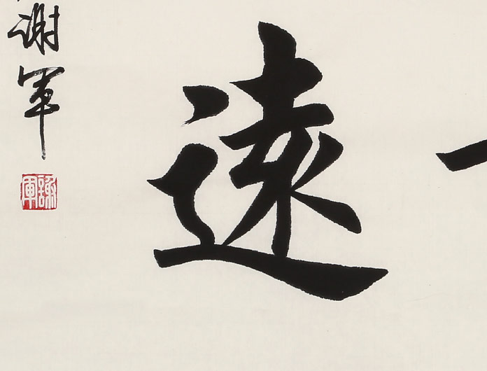 谢军,男,1969年生,吉林白城人,现居北京。自幼酷爱书法,主攻楷书,兼习行书,毕业于国家人事部中国书画人才研修中心,师从著名书法家田英章先生,现为中国世纪大采风书画院院士,中国扇子艺术学会会员,中国美术家画院院士,中国书画界联合会会员,北京茹古斋特聘书法家。其楷书用笔方整,结体紧凑,法度森严,于方整中见险绝。小楷《千字文》于2012年4月入选“庆祝中国出版集团公司成立10周年书法绘画展”并在荣宝斋展出;多幅作品入编《中国书法家辞典》、《中国书法家作品选》等典籍。