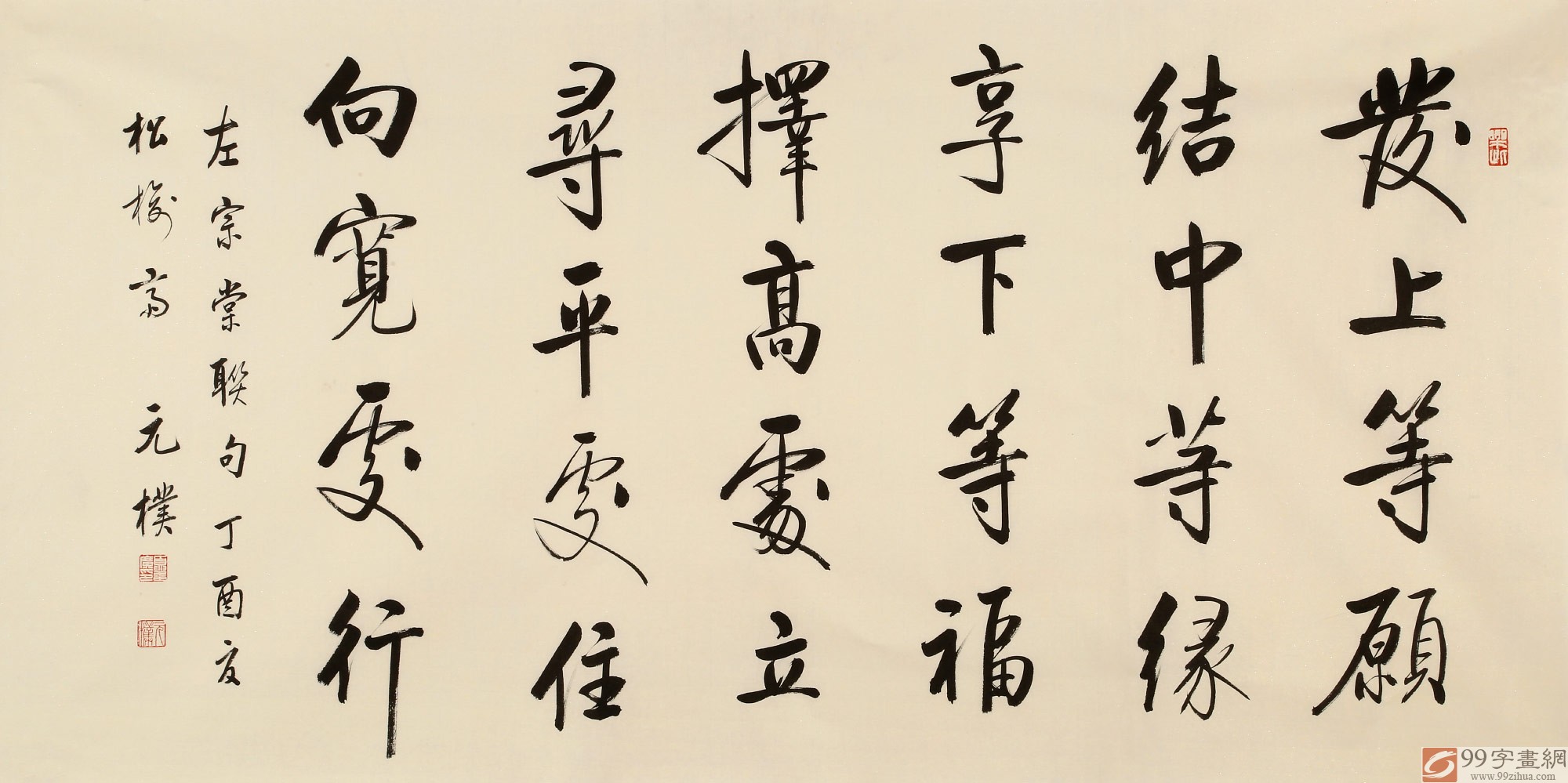 【作品简评】(99字画网艺术评论员玉洁)夏广田先生的书法作品,笔法劲力,笔墨丰厚,结体古朴,布局开张有度。集笔法、墨法、字法、章法于一身。字里行间流露出作者内心的情绪,他的书法作品有精神、有意蕴,认真揣摩每个字的笔法皆不尽相同,是书房字画、办公室字画之选,推荐选购!