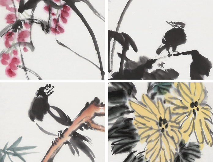 【作品简评 】 观庾超然的花鸟画、人物画,有清和隽永之气,而无邪甜庸俗之习,追其原因,即从正格入 ,以雅逸出,于法度中,寻求传统精华,于超迈中下切实功夫。他的花鸟画,能给人明朗、清新、简练 、生机勃勃之感,达到了形神兼备、情景交融的境界。事实上,在庾超然的作品中,常常是诗、书、画 、印的结合,显示出一种韵致悠然的综合性美感。
