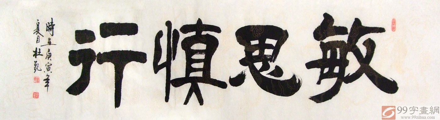 【作品简评】(99字画网艺术评论员晓曼)“敏思慎行”表面意思是说:敏锐的思考,三思慎重地做事。万事要动脑子——三思而后行。这也是做事的原则和基本准则,是办公室标语字画之选,推荐选购!