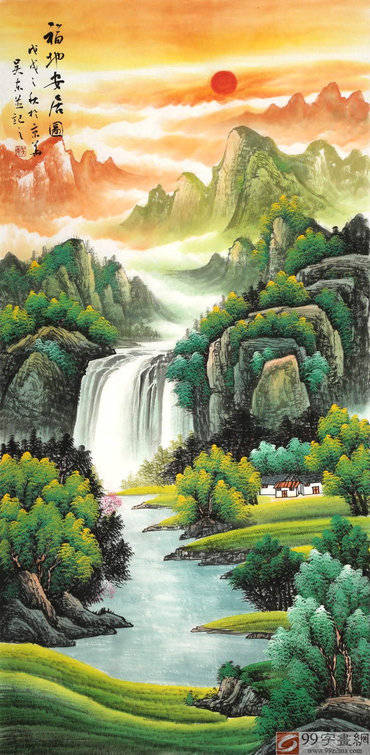 吴东, 男,1965年出生于广西南宁,南宁市美术家协会会员、南宁市山水书画院名誉院长、北京九久书画收藏中心签约画家。作品“飞瀑”在2003年台湾“当代著名书画家精品年展”中获优秀奖,作品“江山揽胜图”在2008年广西名家书画展中获二等奖。近年来,吴东先生醉心于“易经”及风水文化,并将传统国画与五行之变化相结合,颇有心得。 2004年赴台湾参加“周易”学术研讨。 2005年赴新加坡参加“风水文化”研讨会。 2007年为浙商万隆先生绘制15米聚宝盆山水,公司生意至今兴旺。