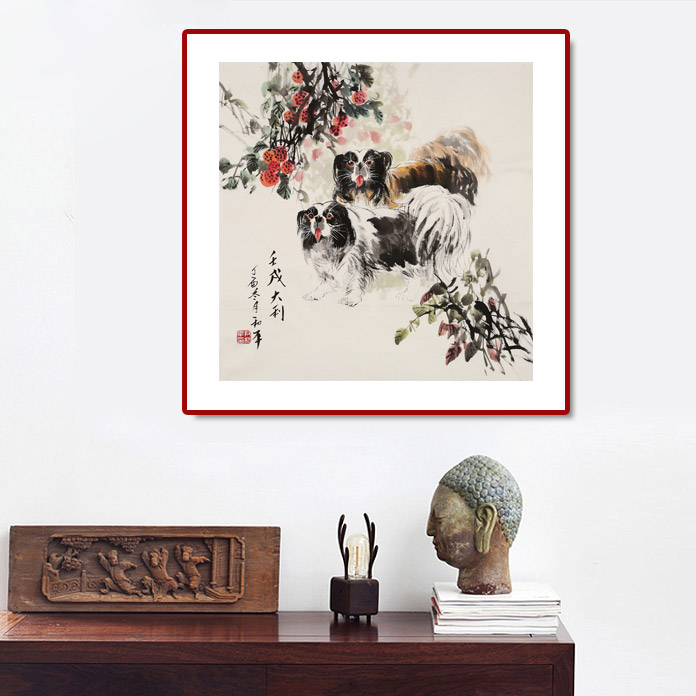 【艺术简评】2018,戌狗祈福。古人认为,狗除了有预兆吉凶灾异的象征作用以外,还有除灾赐福招财的作用。狗一直被视为吉利的动物,狗的叫声也谐音“旺”,其寓意吉祥,被人们视为财富来临的前兆,民间有俗语说,“狗来福,钱入库”。