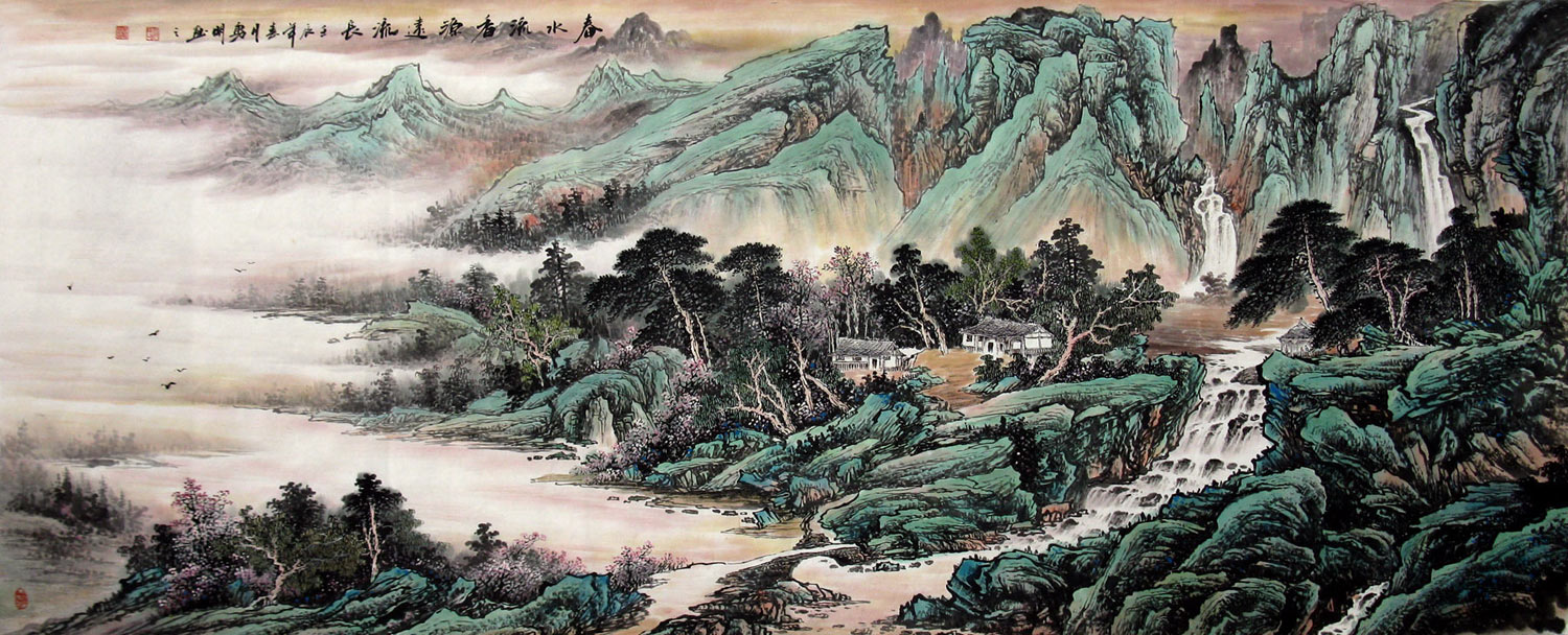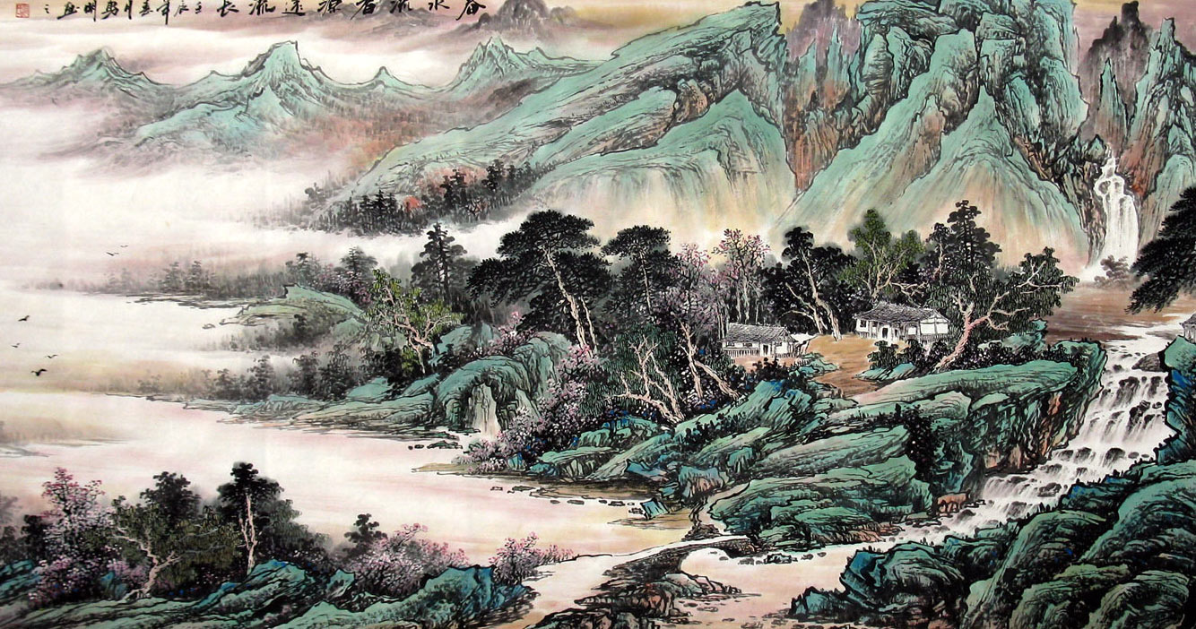 山水画是自然界美的一种反映。自然山水美是客观存在的,是大自然赋于的。人们欣赏山水画,往往结合着生活的想象和联想,雄伟变幻的黄山,奇特秀丽的桂林山 水就给人以不同的美的感受,把它看作是人精神的拟态,自然美是生活美的一种暗示和象征,使人们联想到生活的美而感到了它的美。