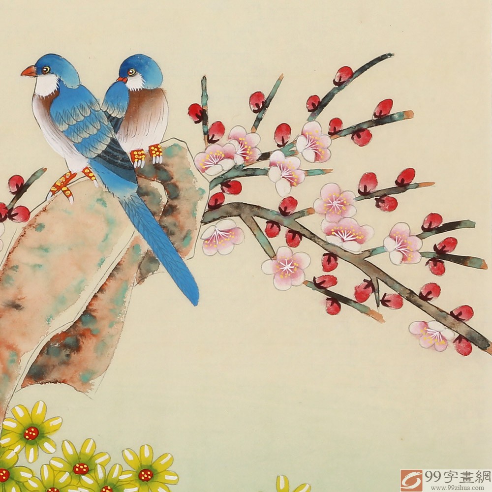 【作品简评】(99字画网艺术评论员玉洁)在中国画表现形式中,工笔画就以精致细腻的笔法描绘景物成为一个有创作难度的艺术门类,花鸟画就是其中的代表,工笔画的高难度和高价值都让精于此道的画家少之又少,同时也让众多的藏友深爱不已。