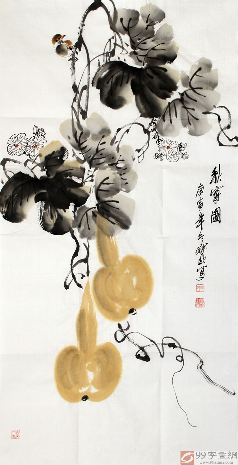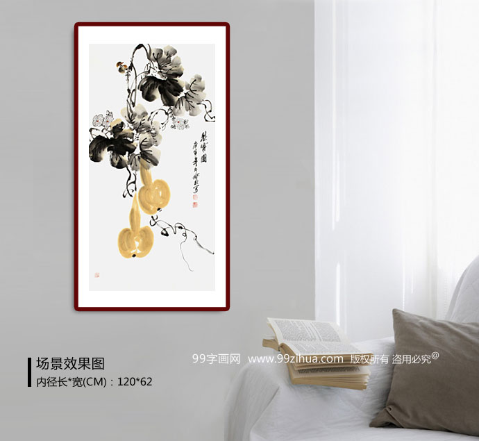 【作品简评】葫芦顾名思义象征着“福禄”,古人视葫芦为求吉护身、避邪祛祟的吉祥物。另外,凡家中有体弱者,可摆放此法器,对健康有利,家有小孩及长者更应选用。此物在一定程度亦可纳福吉祥。它的形状是由圆构成的,象征着和谐美满。不 但在古代人民的物质生活中占有重要地位,而且与文学、艺术、宗教、民俗、神话传说乃至政治等关系也十分密切,围绕葫芦形成的种种意识形态,无疑是构成中国 传统文化的一个重要组成部分。千百年来,葫芦书画作为一种吉祥的收藏品,一直受到人们的喜爱和珍藏,是中华吉祥文化的一种表现。