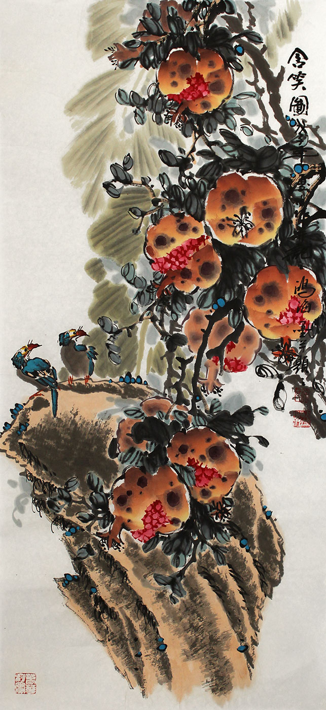 在写意画法的笔墨之间,体悟对通灵、生机的理解。中国画讲究的是内涵,是韵味,是体悟。在笔墨之间追求作品的细节与变化。线条、浓淡赋予作品层次上和结构
