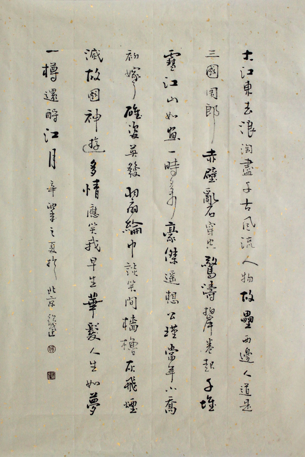 何绍武在小字行书上表现出了超强的笔墨控制力,他的小字行书篇章完整,飘逸优美。但他从不把笔力用老,总能让这张力适可而止。何绍武先生用墨新润,灵巧灵动的效果非常别致,轻灵轻巧,美不胜收,让人回味不已。