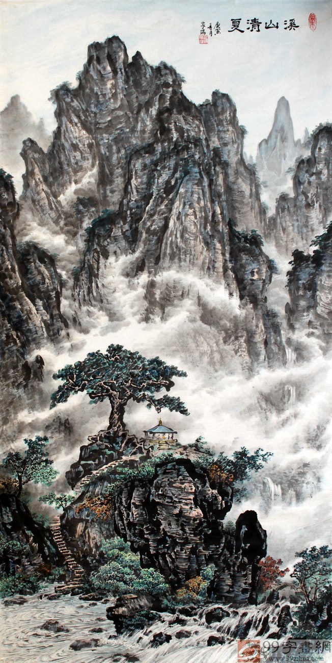 【作品简评】 蒲家瑞,1932年生,虽耄耋之年,然仍痴醉于画,深厚的传统文化素养和卓著的艺术成就声明日隆,为世人瞩目,先生人艺俱老,有“画坛人瑞”、“人间仙家”之誉。作为山水画家的蒲家瑞十分重视深入真山真水,摹写自然的状貌美和感悟自然的精神气质美,真心做到以造化为师。50年来,他北上衡山、南历雁荡,多次往返皖南黄山,足迹遍布祖国的名山大川,写下数幅充满真性情的山水画,他的作品给观赏者建树起一处处远离红尘、无杂无染的精神家园,使人们可以坐以观之、立以赏之、卧以游之,其乐无穷。