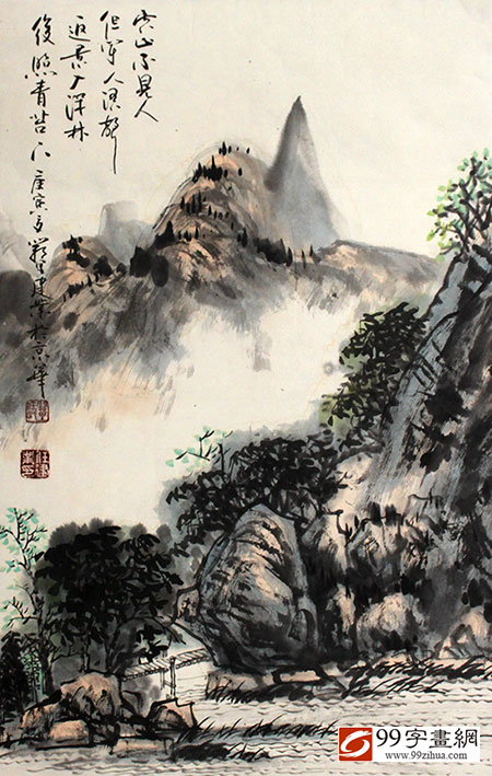 任建业的山水画古朴高雅,功力扎实,无论是蒙山、尼山、峄山还是泰山、崂山,画之境界含蓄而深邃,艺术 语言亲切而明快。山光水色树木郁郁苍苍,或丹砂醉染丛林、或翡翠漫罩群山、或流泉飞瀑、或云蒸霞蔚。其间楼阁俨然,栉次鳞比,或帆樯历历、或渔舟晚唱,意 趣悠然而隽永。充分展示出大自然的鬼斧神工及现代活力。