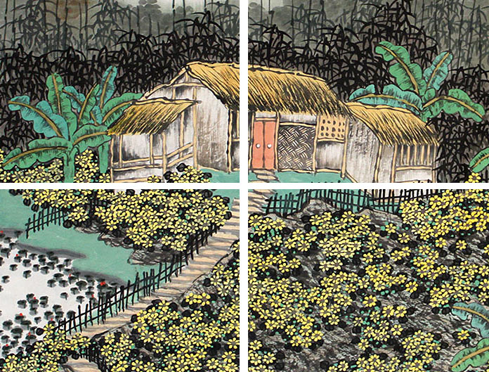 【作品简评】水墨田园画家宁良成从名称到画面都体现出他的思考和创造精神。他曾师从黄格胜研习写意山水,后专攻田园山水画。用笔工 细,但不工致;写意,但不豪放,追求清新秀丽的艺术格调。看宁良成的画,常会有一股湿润的气息扑面而来,似乎还夹杂着淡淡的水腥味和潺潺的流水声。