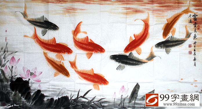 作为99字画网签约的知名国画鱼名家,周升达先生是我所熟悉的,欣赏周升达先生的国画鱼,绝对是一场让人心旷神怡的美的盛宴,周先生对画鱼情有独钟。他笔下的鱼,挥洒自如,一气呵成线条流畅、色泽浓淡相宜,精美绝伦,气韵生动,展现了中国国画的精髓所在。