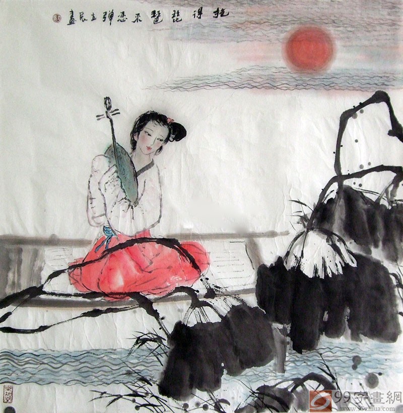 【作品简评】李立辰人物仕女图《抱得琵琶》,作者笔墨流畅清新,用色淡雅简约,人物神态刻画的极有韵味,他以细腻的笔触,描绘出少女的五官和黑发,再以洗炼的水墨写意笔法绘写衣服及背景;在保持细腻精美画风的同时,作品还有意刻画人物内心世界,强调画中人物传递给观者的感受。《抱得琵琶》中作者把少女脸部刻画的十分细腻传神,近来李立辰人物画不断升值,他的作品具有非常高的装饰与收藏价值。