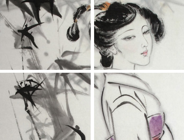 李先生的仕女图体现了显著的写实主义风格的同时又大胆的运用了写意画法,特别是以笔墨展示东方女性的美,极力刻画人物面部特别是眼睛的神韵和精妙,形成了独特的淡雅简约的风格。他的作品极具装饰与收藏价值。