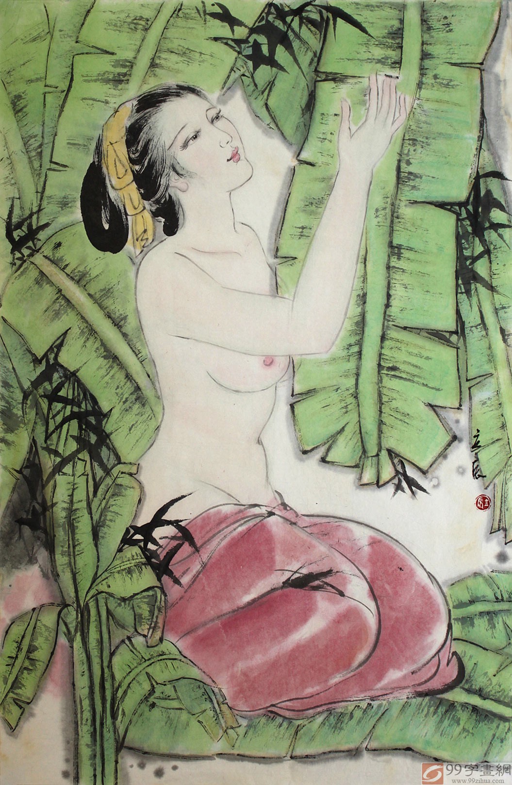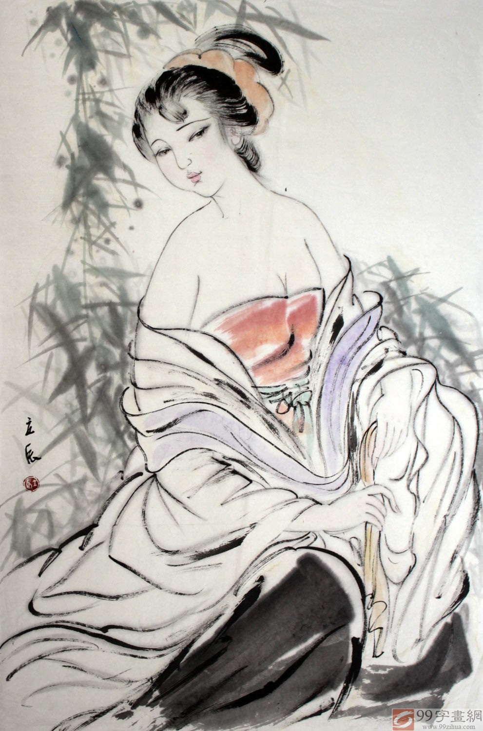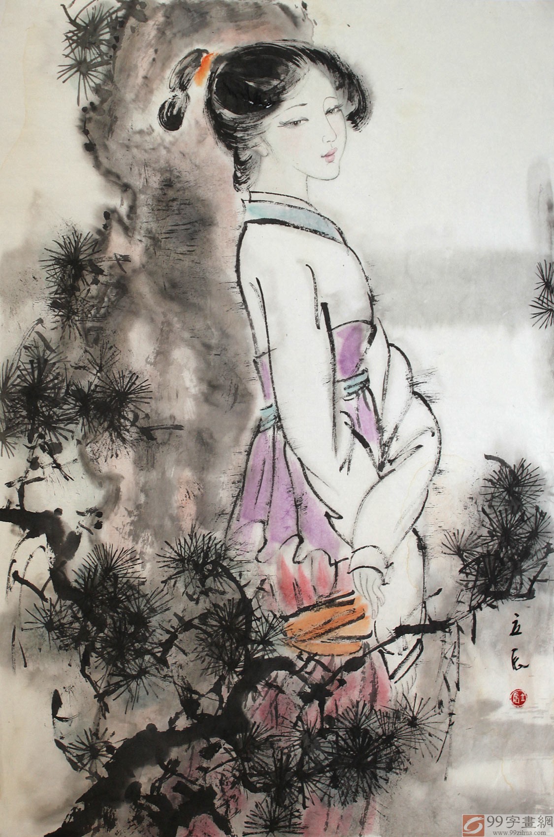 【作品简评】 李立辰,河北省著名仕女画家,他的仕女画作品,用色淡雅简约,人物神态刻画的极有韵味,他以细腻的笔触,描绘出少女的五官和黑发,再以洗炼的水墨写意笔法绘写衣服及背景;在保持细腻精美画风的同时,作品还有意刻画人物内心世界,强调画中人物传递给观者的感受。近年来李立辰人物画不断升值,他的作品具有非常高的收藏价值。