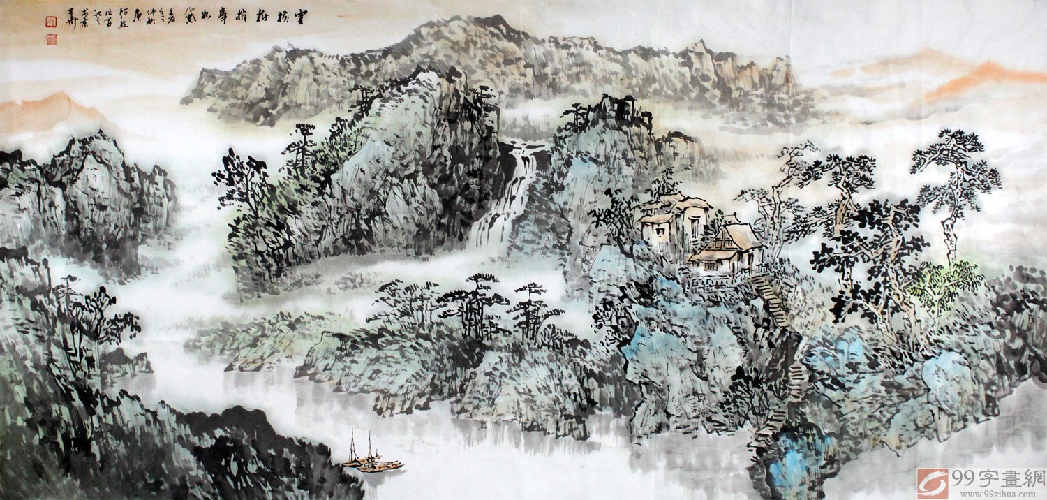 【作品简评】庾超然出生于湖北竟陵,曾长期在黄鹤楼书画院研习创作,庾超然的山水以点、线为主,笔中有墨、墨中有笔,使之山水显示出苍润的笔墨特点,特别是他的线的干湿、出入变化体现线的造型、线的弹性及其凝练的、有虚实节奏的美感魅力,显出章法得体,笔墨味道自然微妙,而整体结构,墨、色对比,恰到好处,足以见出画家的笔墨修养与审美取向。庾超然的山水画是偏于文化传统中文人画审美理想中的含蓄、淡远、空灵、飘逸等美感范畴的;欣赏他的淡墨山水画,我们常常可以感知天地间的静寂超然之气。