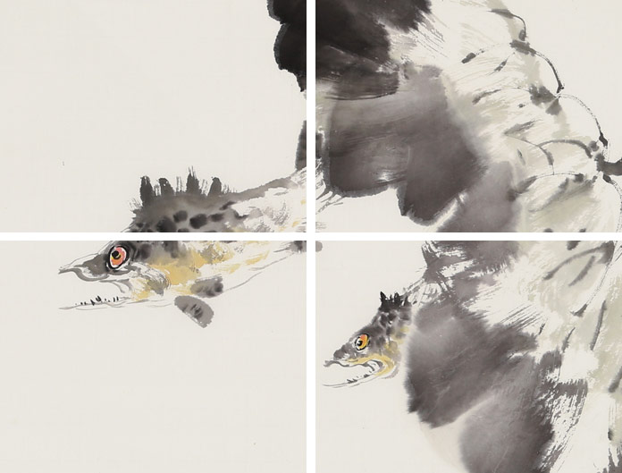 【作品简评】王宝钦作为国内知名的牡丹画画家,他的牡丹风格独具,造型典雅,早已为人们所喜爱,然观王宝钦的花鸟画作品画面简洁清丽,设色静雅,有一种流动着的来自大自然韵律美。鱼在中国传统文化中即被视作吉祥、富贵、长久的代表,鱼的名声响亮 ,鱼的含意深广,才用得如此广泛 ,柔可以比美女 ,刚亦能衬晓将,以它的健壮活跃天性象征着勇武矫健。