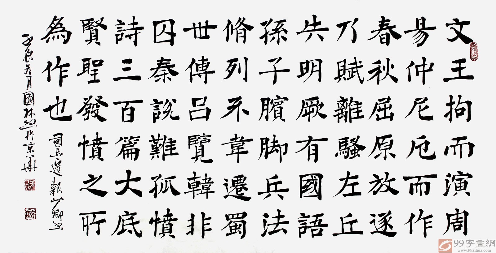 司马迁《报任安书》:文王拘而演《周易》;仲尼厄而作《春秋》;屈原放逐,乃赋《离骚》;左丘失明,厥有《国语》;孙子膑脚,《兵法》修列;不韦迁蜀,世传《吕览》;韩非囚秦,《说难》《孤愤》;《诗》三百篇,大底贤圣发愤之所为作也。