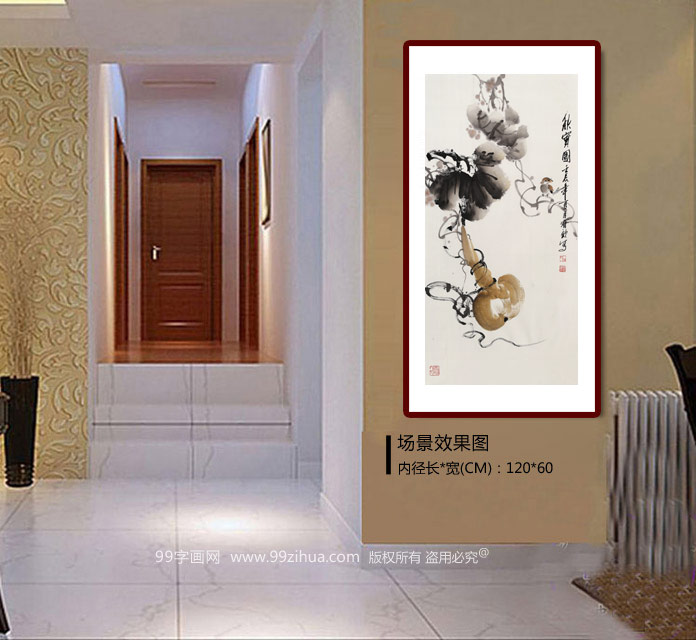 葫芦顾名思义象征着“福禄”,古人视葫芦为求吉护身、避邪祛祟的吉祥物。另外,凡家中有体弱者,可摆放此法器,对健康有利,家有小孩及长者更应选用。此物在一定程度亦可纳福吉祥。它的形状是由圆构成的,象征着和谐美满。不 但在古代人民的物质生活中占有重要地位,而且与文学、艺术、宗教、民俗、神话传说乃至政治等关系也十分密切,围绕葫芦形成的种种意识形态,无疑是构成中国 传统文化的一个重要组成部分。千百年来,葫芦书画作为一种吉祥的收藏品,一直受到人们的喜爱和珍藏,是中华吉祥文化的一种表现。