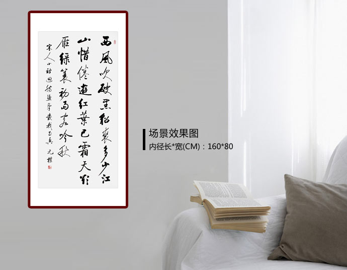 书法内容:西风吹破黑貂裘,多少江山惜倦游。 红叶已霜天欲雁,绿蓑初雨客吟秋。