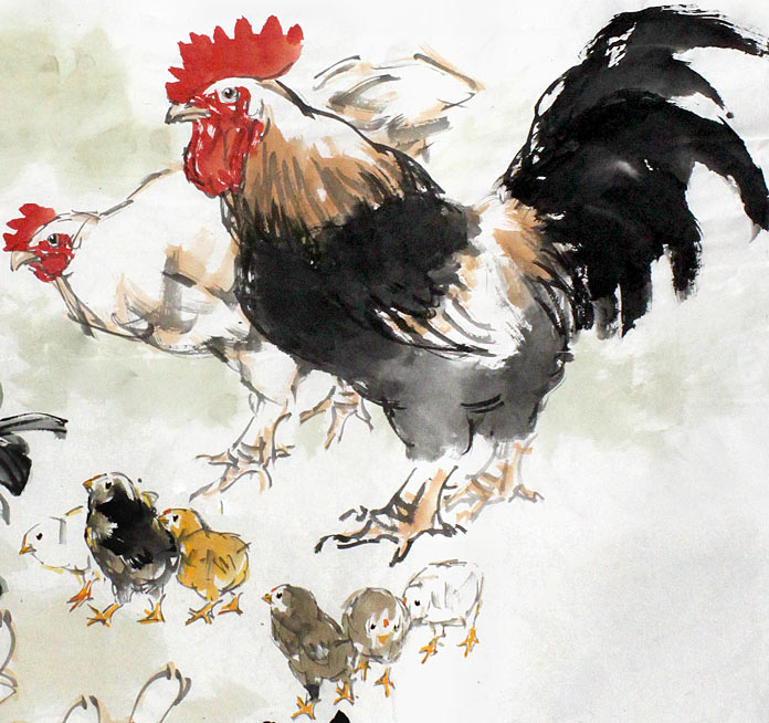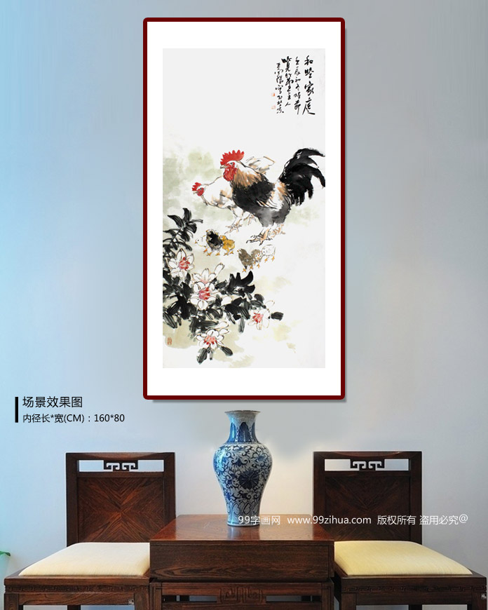 【作品简评】(99字画网艺术评论员玉洁)王向阳的这幅写意国画《和睦家庭》主要由一只公鸡和一只母鸡带领一群小鸡在民间寻找食物的场景,左下方是一簇百合花,”百合花“象征家庭幸福、夫妻和睦等;这幅作品下笔温馨和睦,构图新颖,具有一家团圆、和谐幸福的美好寓意,是一幅艺术品味高雅,喻吉祥如意、和谐幸福的国画佳作。在王向阳的每一件画作中都渗透着他对生活的理解、对人生的感悟、对思想的诠释,使得他的作品风格独特、造型典雅,在传统的基础上得以创新。
