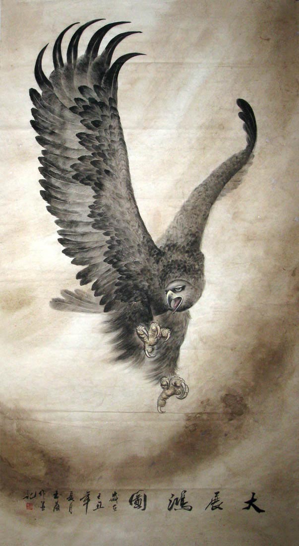 鹰是力量的化身,有“空中之王”美誉,在无垠的天空高傲地飞翔,矫健,勇猛,甚至睿智,尤其是它的眼睛,就算地面上很小猎物的一举一动,它都可以明察秋毫,令人羡慕。除了人类的弓箭与火枪,地面上再强大的野兽对它都无可奈何,它应该算是伟大者。