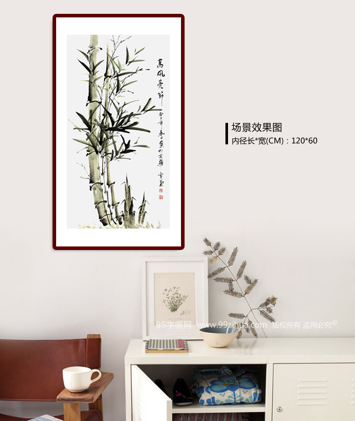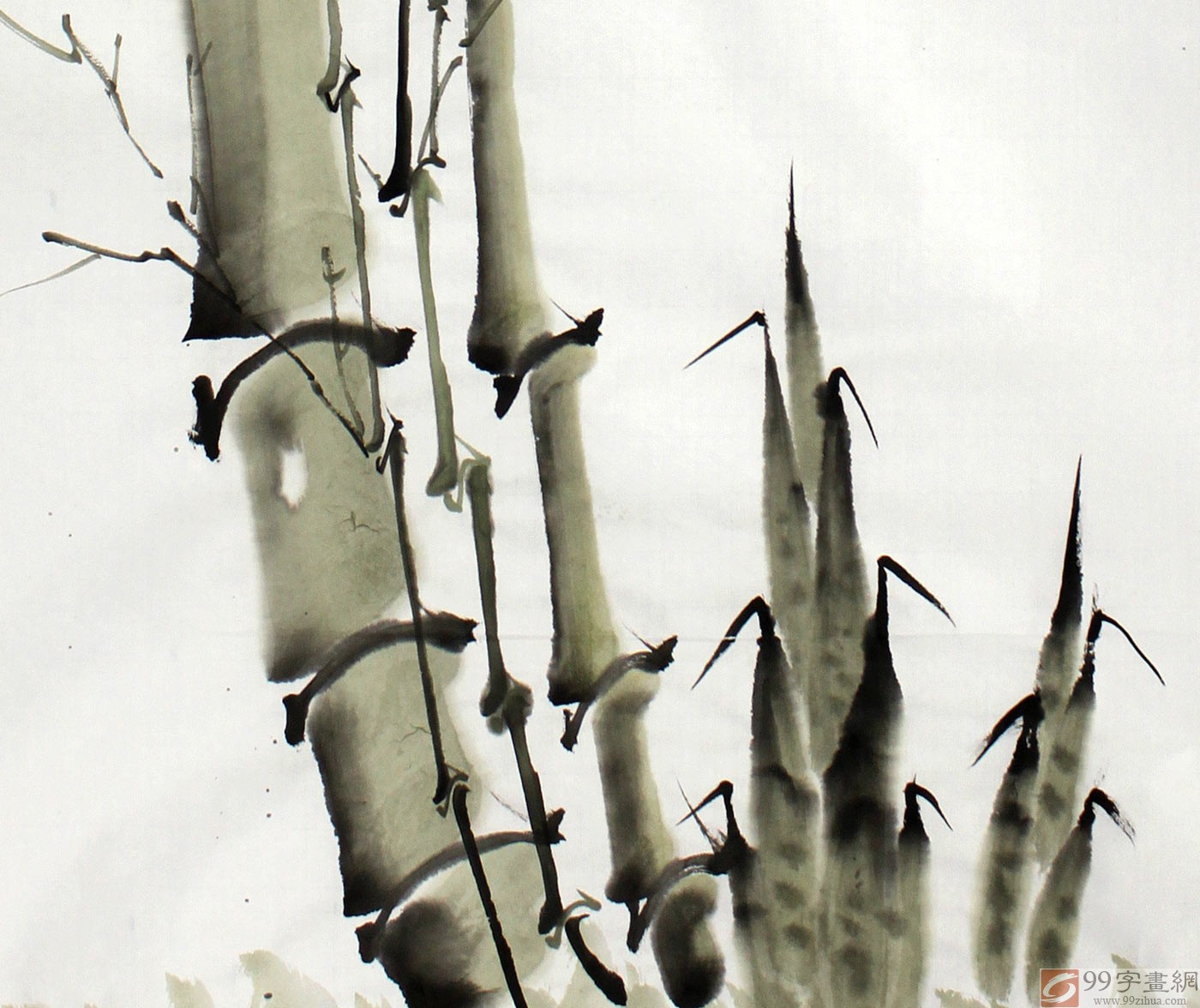 【作品简评】(99字画网艺术评论员路丰)中国竹子自古以来就被人们敬仰和偏爱,大部分人都喜欢在房屋中悬挂一幅竹子图;一来装饰家居;二来还可激励和鼓舞主人要学竹子坚韧顽强的品格。竹子在古时就被文人喜爱并绘制成画。竹子,四季常青,竹竿刚劲、清新,生机盎然,蓬勃向上,当春风还没有融尽残冬的余寒,新笋就悄悄在地上萌发了,一场春雨过后,竹笋破土而出,直指云天,竹子秀逸有神韵,是清正廉洁,谦虚淡泊,胸怀高尚的象征。