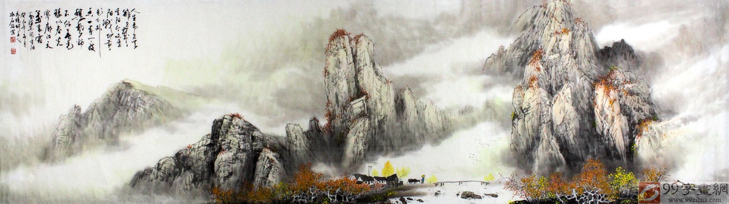 【作品简评】“人生易老天难老,岁岁重阳,今又重阳.......”此词出自毛泽东《采桑子·重阳》,绘毛泽东在闽西征途中,欣逢重阳佳节,触景生情,因成此词。本幅大气山水画《采桑子·重阳》绘诗情画意,浓郁风情。被程冰石先生画得那么鲜明爽朗;它表现了对自然和人生的看法,表现得那么豪迈乐观,天空海阔,气度恢宏。