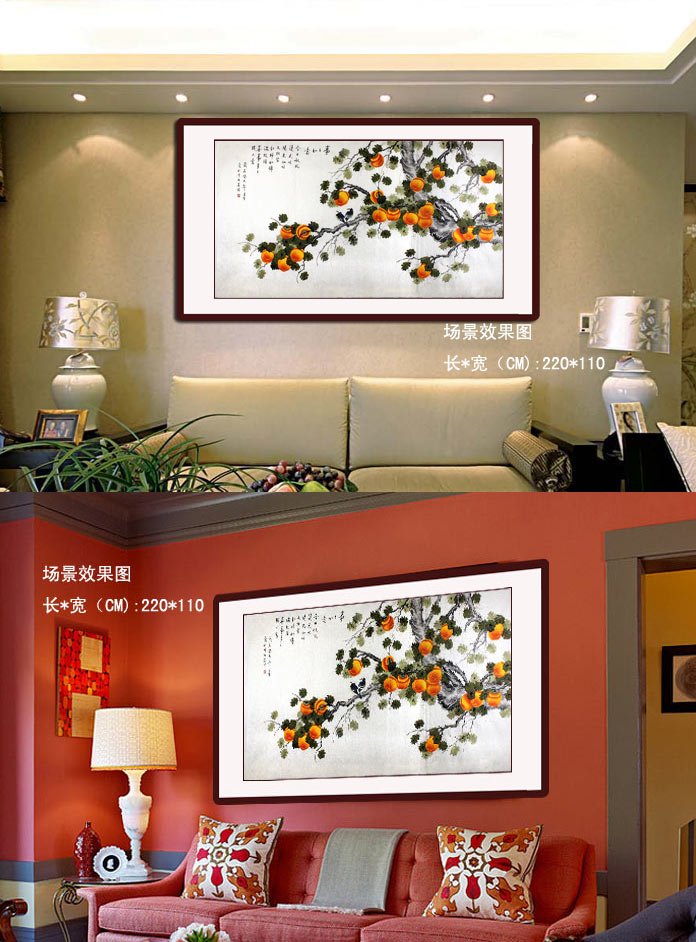 【作品简评】(99字画网艺术评论员晓曼)”事与柿同音,加之如意,寓意事事如意或百事如意、万事如意。自古以来柿子就被人们喜爱,留下的诗词中对于柿子的描写也是多如繁星。柿子也是国画中常见的题材。凌雪老师的这幅《事事如意》硕果图,红润丰满,硕果累累,给人喜庆、祥和,凌雪老师将这幅柿子大吉硕果图浓而不俗的绘制出来,在细腻的笔触和朴实的笔墨下加以展现。柿果色彩火红而不烦眼,具形而更具神。可以说这样对柿子挂满树枝盛开景象精描细绘的画作,值得购买装饰品鉴 。