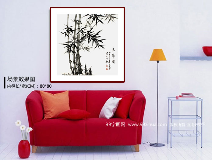 【作品简评】(99字画网艺术评论员路丰)自古中国人对居住环境有相当高雅的品味,故有家居装饰之谈。现如今,国画已经普及千家万户,用它装饰家居不仅高贵档次,而且富有风水之含义;而竹子代表着超凡脱俗,清新高雅,是家居装饰画首选。竹,秀逸有神韵,纤细柔美,四季常青,象征青春永驻。这幅《高节图》写春天竹子潇洒挺拔,高风亮节,清丽俊逸,翩翩君子风度;竹子象征柔中有刚的做人原则,凌云有意、强项风雪、偃而犹起,竹节必露,竹梢拔高,比喻高风亮节,品德高尚不俗,生而有节,视为气节的象征。